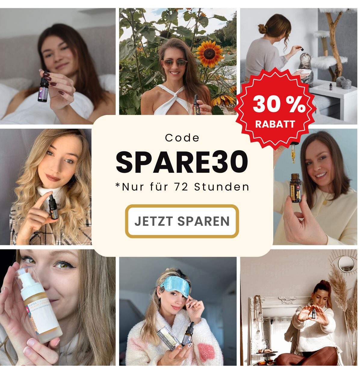 Die nächsten 72 Stunden bekommst du 30 % Rabatt auf unsere hochwertigen CBD-Öle und Hautpflegeprodukte.