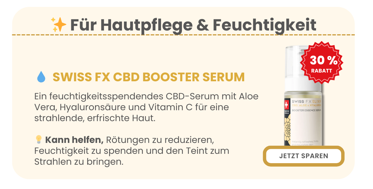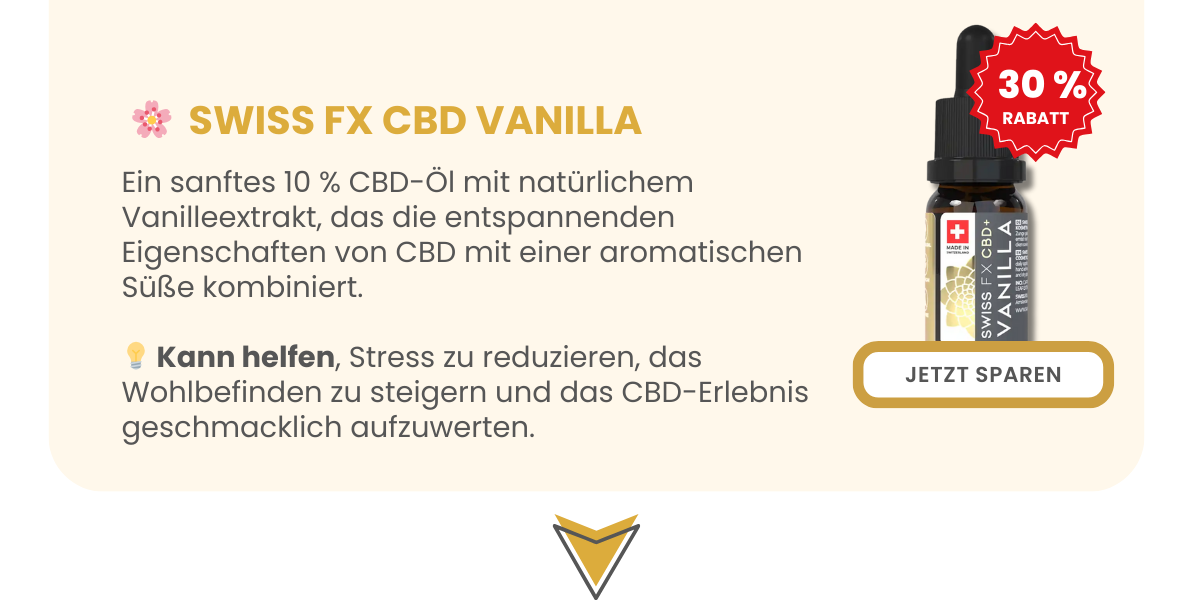 Lass dir diese Chance nicht entgehen, SWISS FX CBD mit 30 % Rabatt zu erleben. Nutze den Code SPARE30 und sichere dir deine Lieblingsprodukte aus unserem SWISS FX CBD-Öl und Hautpflege Sortiment, bevor das Angebot endet!